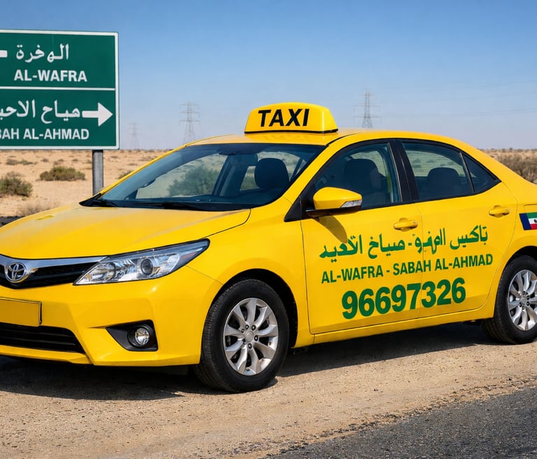 نوفر لك تاكسي سريع وآمن في الوفرة وصباح الأحمد على مدار الساعة.